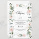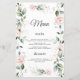 Aquarela Verde Flores Rosa Douradas Menu Casamento