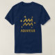 Camiseta personalizada para "Aquário" com símbolo zodíaco e estrelas em ouro. Várias cores de camisa disponíveis; a cor mostrada é azul-marinho.