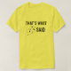 Aquele é o que o queijo disse o t-shirt com letras pretas e gráfico.