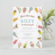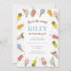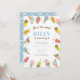Faça uma festa de sorvete para o seu pequeno este verão! Este adorável convite de aniversário apresenta sorvetes e picolés coloridos e bonitos e um céu azul de volta. Todos os detalhes, inclusive, são personalizáveis. Outras cores também disponíveis nesta coleção, veja abaixo.