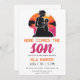 Apresentando um vibrante design de explosão solar em tons quentes de laranja e amarelo, estes convites capturam a alegria e o calor de um novo menino. O fundo inspirado na aquarela adiciona um toque de suavidade e elegância. Perfeito para um chá de fraldas temático "Você é o meu Sol", esses convites certamente aumentarão seu dia especial.