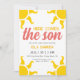 Apresentando um vibrante design de explosão solar em tons quentes de laranja e amarelo, estes convites capturam a alegria e o calor de um novo menino. O fundo inspirado na aquarela adiciona um toque de suavidade e elegância. Perfeito para um chá de fraldas temático "Você é o meu Sol", esses convites certamente aumentarão seu dia especial.