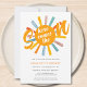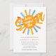 Convide a família e os amigos para o seu chá de fraldas temático com este belo convite para o chá de fraldas dos rapazes. Apresenta o texto "Aqui Vem o Filho" na tipografia da na moda com um sol de cor clara de água. As costas estão decoradas com um padrão solar. Facilmente personalizável. Original Watercolor © Michele Davies.