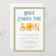 Convide a família e os amigos para o seu chá de fraldas temático com o convite para o chá de fraldas dos na moda. Apresenta o texto "Aqui Vem o Filho" em retrorreflectotipografia com uma aquarela amarela. Facilmente personalizável. Use a Ferramenta Design para alterar o tamanho, o estilo ou a cor do texto. Porque nós criamos a nossa trabalho de arte, você não encontrará esta imagem exata de outros designers. Original Watercolor © Michele Davies.