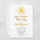 Convite para chá de fraldas com uma luz do sol com cor d'água com texto retrô "aqui vem o filho". Personalize com suas informações para que a mãe esteja. Clique em "clicar para personalizar mais" para alterar o estilo, o tamanho ou a cor da fonte.