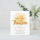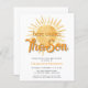 Convide a família e amigos para o bebê do seu filho temerário com este belo convite orçamental. É decorado com tipografia na moda e um sol amarelo de aquarela. Facilmente personalizável. Original Watercolor © Michele Davies.