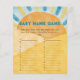 Cor Única do Sol Cartão de Jogo de Nome de Bebê com Temas Solares com Chá de fraldas em Cor Amarela, Azul e Laranja Queimada.