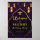 Faux Dourado Gold Foil Arabian Noites de aniversário Chá de fraldas de casamento Chá de panela árabe Genie Lanterna marroquina Sinal de boas-vindas do Oriente Médio Poster