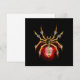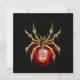 Aranha mecânica, com pá-pá de ouro, engrenagens de latão e uma lâmpada de vidro vermelha sobre fundo preto. Estilo Steampunk.