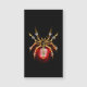Aranha mecânica, com pá-pá de ouro, engrenagens de latão e uma lâmpada de vidro vermelha sobre fundo preto. Estilo Steampunk.
