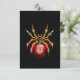 Aranha mecânica, com pá-pá de ouro, engrenagens de latão e uma lâmpada de vidro vermelha sobre fundo preto. Estilo Steampunk.