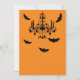 As aranhas assustadores penduram de uma beira laçado neste convite de festas do traje do Dia das Bruxas "deixar cair dentro para uma mordida". A parte traseira é decorada com bastões em vôo em torno de um candelabro delével. O envelope de coordenação está igualmente disponível.