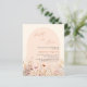 Uma queda elegante no Chá de panela do Amor. Um fundo creme, cor bege e um arco colorido de pêssego. Decorado com flores silvestres de cor d'água em bege, rosa. 1 folha = 1 convite impresso de borda a borda.