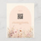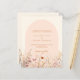Um convite de casamento elegante. Um fundo creme, cor bege e um arco colorido de pêssego. Decorado com flores silvestres de cor d'água em bege, rosa. Voltar: adicione o URL/link ao seu site de casamento para obter mais detalhes e/ou RSVP. 1 folha = 1 convite impresso de ponta a ponta