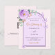 Um fundo cor-de-rosa pincelado com arco colorido violeta e roxo. Decorados com um verde floral, rosa, de cor aquosa, de cor verde, de eucalipto verde e borboletas. Personalize e adicione seus nomes e detalhes. Voltar: adicione o URL do site de casamento ao código QR para obter detalhes e/ou RSVP. 1 folha = 1 convite impresso de borda a borda.