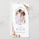 Aprecie seus convidados com este marcador elegante Salve o marcador de data. Design único com nomes de casais e fotografia em moldura de arco em greve e folhagem de cor marrom de cobre nos lados. Se você quiser adicionar uma fita elegante na área superior do marcador, há um espaço livre no topo onde um punch inteiro pode ser feito. Detalhes da caligrafia escrita em mão moderna e formato de data atraente. Cor de cobre marrom astanho no fundo.