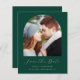 Este simples e minimalista Cartão Salvar a Data apresenta um boho de fotos acima das palavras "Salvar a Data" em um elegante guião de manuscrito dourado, seguido pelos nomes dos casais, data do casamento e cidade em sans serif em um fundo verde esmeralda. Adicione uma mensagem mais detalhada com informações adicionais no verso, juntamente com um código QR que envia convidados para o seu site de casamento.
