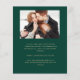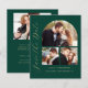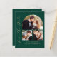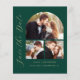 Esta simples e minimalista placa Save the Date apresenta um arco de colagem de fotos, com uma foto horizontal no topo e duas fotos quadradas abaixo. As palavras "Salvar a Data" são executadas verticalmente para cima da margem esquerda no elegante script de escrita manual dourada. Os nomes dos casais, a data do casamento e a cidade aparecem abaixo da colagem de fotos em sans serif num fundo verde esmeralda. Adicione uma quarta foto horizontal e uma mensagem mais detalhada com informações adicionais no verso.