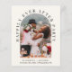 Anúncio do elopemento de creme leve e convite para recepção. A frente mostra sua foto de casamento em um quadro de arco e "Feliz Festa Depois" em tipografia elegante. Adicione seus primeiros nomes, data do casamento e local. No verso, personalize seu anúncio e convite, adicione seus nomes em um script semelhante a assinatura e insira seu endereço de site de casamento para criar um código de QR digitalizável para seus convidados digitalizarem para RSVP on-line e obter detalhes adicionais.