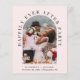 Anúncio de elopemento de rosa claro e convite de recepção. A frente apresenta sua foto em um quadro de arco e "Feliz Festa Depois" em tipografia elegante. Adicione seus primeiros nomes, data do casamento e local. No verso, personalize seu anúncio e convite, adicione seus nomes em um script semelhante a assinatura e insira seu endereço de site de casamento para criar um código de QR digitalizável para seus convidados digitalizarem para RSVP on-line e obter detalhes adicionais.
