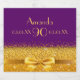 Elegante, clássico, glamouroso e feminino para uma festa de aniversário 90. Uma fita e um arco dourados com brilho e brilho de ouro, um pouco de brilho e luxo. Fundo roxo. Modelos de nome, idade 90, data de nascimento e data de aniversário e número de idade. Ouros.