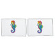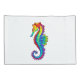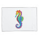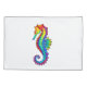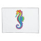 Articulação artificial, brilhante, arco-íris, cavalo de mar poligonal sobre fundo branco. Tatuagem brilhante.