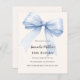 Um bege macio, fundo colorido creme, decorado com um grande arco azul claro. Personalize e adicione um nome e detalhes da parte. 1 folha = 1 convite impresso de borda a borda.