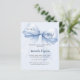 Um fundo azul claro e macio, decorado com um grande arco azul. Personalize e adicione um nome e detalhes da parte. Texto no arco: É um menino! 1 folha = 1 convite impresso de borda a borda.