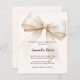 Um bege macio, fundo colorido creme, decorado com um arco grande. Sexo neutro. Personalize e adicione um nome e detalhes da parte. 1 folha = 1 convite impresso de borda a borda.