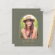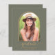 Convite de Anúncio de Festa de Graduação Boho Minimalista Verde Dourado com sua foto e nossa tipografia boho chique deslumbrante e arco geométrico em verde musgo empoeirado e dourado amarelo açafrão. Perfeito para anunciar sua graduação e festa! **Nosso papel ORÇAMENTO é menor e mais delicado, mas ainda é lindo!** Se precisar de ajuda ou itens correspondentes, entre em contato conosco em cedarandstring@gmail.com.