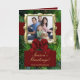 Adicione sua foto e mensagem personalizada a esta extravagante placa de árvore de natal de pinheiro com um arco de veludo majestoso e uma estrutura dourada. O cartão perfeito para um retrato familiar tradicional, horizontal ou vertical!