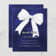 Para um 18º (ou qualquer idade) Um fundo azul-marinho, incolor, decorado com um arco branco grande. Personalize e adicione um nome e detalhes da parte. 1 folha = 1 convite impresso de borda a borda.