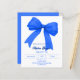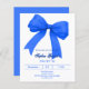 Um fundo branco, decorado com um grande arco azul real. Personalize e adicione um nome e detalhes da parte. 1 folha = 1 convite impresso de borda a borda.