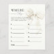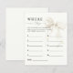 Cartão de chá de panela branco de arco na moda "Onde eles estavam" com tipografia de script elegante em um fundo mínimo e nítido. Perfeito por adicionar um momento divertido e interativo a um chá de panela, chá de casamento ou festa de solteira, especialmente para celebrações temáticas ou de preto e branco. Os convidados adivinham locais das fotos do casal, criando risos e memórias. Coordena-se com convites, decorações e artigos de papelaria correspondentes no mesmo design branco de arco.