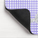 Fita branca translúcida e arco com nome sobre fundo de gingham branco e roxo. O nome é editável ou pode ser excluído.