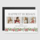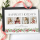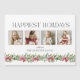 Design de botânico moderno e limpo, apresentando uma borda de arcos de coquete cor-de-rosa-d'água e mistério, modelo de quatro fotos e saudação gráfica elegante de "Feriados mais Felizes" em uma fonte personalizada (personalize a cor no editor de texto).