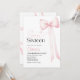 Convite de aniversário com arco de coquete rosa-d'água.