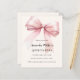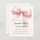 Um bege macio, fundo colorido creme, decorado com um arco grande rosa. Personalize e adicione um nome e detalhes da parte. 1 folha = 1 convite impresso de borda a borda.