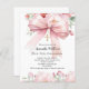 Fundo branco, decorado com um arco cor-de-rosa grande e flores ouros crus e rosa. Personalize e adicione um nome e detalhes. 1 folha = 1 convite impresso de borda a borda.