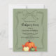 Um fundo verde de cor verde-musgo mutado. Decorado com abóboras, e um arco desenhado à mão. Personalize e adicione os detalhes da festa. 1 folha = 1 convite impresso de borda a borda.