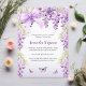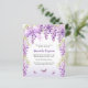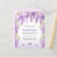 Um elegante fundo de gradiente branco e roxo, decorado com flores de wisteria de cor lavanda, borboletas e arco. Personalize e adicione um nome e detalhes da parte. Traseiro: lavanda colorido 1 folha = 1 convite impresso de borda a borda.