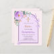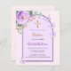Um fundo rosa com um arco. Decorado com uma flor violeta, floral roxo, rosa, folhagem verde de eucalipto aguado e borboletas. Personalize e adicione um nome e detalhes.