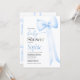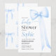 Convite para chá de fraldas com arco de coquete azul-aquarela.