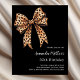 Um fundo preto clássico, decorado com um grande arco com impressão leopardo. Personalize e adicione um nome e detalhes da parte. 1 folha = 1 convite impresso de borda a borda.