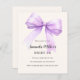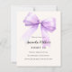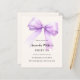 Um fundo bege suave, colorido creme, decorado com uma lavanda grande, violeta, arco roxo. Personalize e adicione um nome e detalhes da parte. 1 folha = 1 convite impresso de borda a borda.