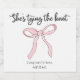 Adicione um toque final doce ao seu chá de noiva com nossos rótulos de vinho de casamento "Ela Está Amarrando o Nó" Laço Coquete Rosa! Projetados para complementar perfeitamente nossos convites coordenados, esses adesivos apresentam um delicado laço rosa, criando um clima feminino e caprichoso. Eles são o detalhe perfeito para unir o tema do seu chá.