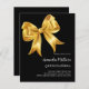 Um fundo preto clássico, decorado com um arco grande. Personalize e adicione um nome e detalhes da parte. 1 folha = 1 convite impresso de borda a borda.