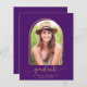 Convite de Anúncio de Festa de Graduação Boho com Orçamento, Roxo e Dourado Minimalista com sua foto e nossa tipografia boho chic deslumbrante e arco geométrico em roxo real e dourado amarelo açafrão. Perfeito para anunciar sua graduação e festa! **Nosso papel ORÇAMENTO é menor e mais delicado, mas ainda é lindo!** Se precisar de ajuda ou itens correspondentes, entre em contato conosco em cedarandstring@gmail.com.