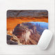 O sol da manhã incandesce vermelho no arco do Mesa imediatamente depois do nascer do sol no parque nacional de Canyonlands, Utá.