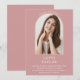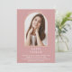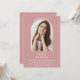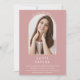 Com um arco dourado elegante em um fundo rosa pó, este convite de formatura pode ser personalizado com a foto do formando especial.